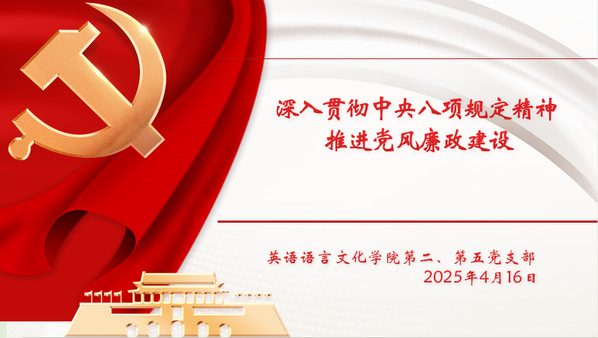 本网讯 为持续推进党风廉政建设,强化党员纪律意识和责任担当,近日,英文学院第二、第五党支部在G101教室联合举办“深入贯彻中央八项规定精神,推进党风廉政建设”专题学习会。