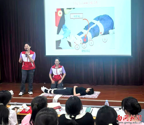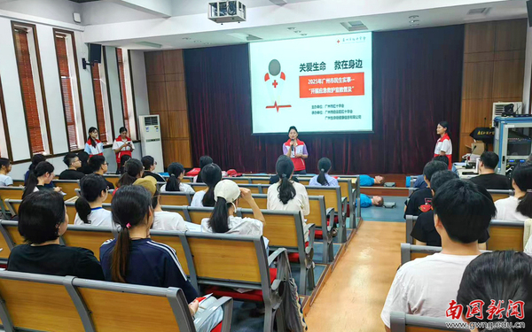 本网讯 5月10日,机关第五党支部联合广州市红十字会,在F101学术报告厅举办“党建护航·救在身边”救护培训主题党日活动。活动面向机关党员、辅导员、后勤宿管及学生志愿者骨干,通过系统专业的急救技能培训,有效填补了师生急救知识空白,为构建平安校园提供了坚实保障。