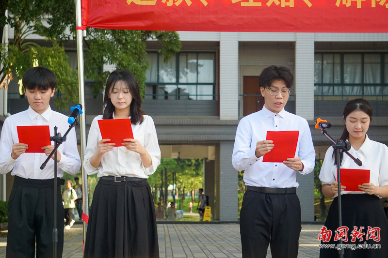 表演结束后,全体青年学生庄严举起右拳,以青春的名义共同宣誓:“立志成才,报效祖国!恪守校训,勤奋学习!勇于担当,开拓创新!请党放心,强国有我!请祖国放心,复兴有我!”铿锵誓言彰显出南国学子坚定跟党走、奋进新时代的信念与决心。