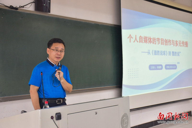 讲座中,张德胜教授以个人运营的“德胜说球”自媒体为例,系统分享了从内容创作到多元传播的全流程与核心经验。他通过解析师生共创模式、复盘抖音运营策略,并阐释“脚步到,学问到”的实践箴言,为文传学院的学子们提供了一套行之有效的创作方法论。