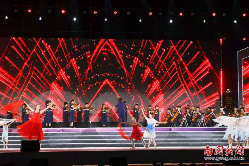 在此次汇演中,任楠老师作为舞蹈版块编导与执行导演,为乐贤坊小学艺术团参演的弦乐舞蹈节目《弦途有你》注入专业创想—巧妙融合芭蕾舞足尖技巧与古典舞跳、转、翻等元素,结合弦乐激昂旋律打造出沉浸式艺术场域的独特体验,不仅展现了教师团队的临场方案调整能力与专业素养,更赢得参演单位及主办方的高度认可,为广外南国商学院艺术学院后续艺术实践奠定良好基础。她表示,未来将持续推进学院艺术实践平台建设,期待更多师生参与其中,彰显塑造技艺与心灵兼修的艺术人才的育人理念。