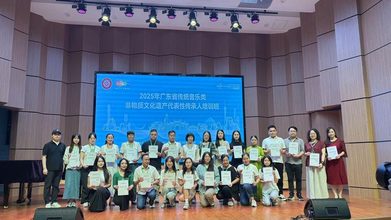 近日,由广东省文化和旅游厅主办、广东省非物质文化遗产促进会承办的“2025年广东省传统音乐类非物质文化遗产代表性传承人培训班”开班,我校艺术学院教师杨箫铭凭借扎实的专业积累有幸入选参训,与来自全省各地约200名传统音乐类非遗传承人、业务骨干共同参与此次专业赋能。