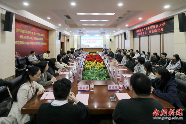 本网讯 2025年10月12日,我校副校长王铭玉率团,亲自护送20名赴天津外国语大学交流学习的学生顺利抵达并完成报到。当天,天津外国语大学以一场高规格欢迎会为交流生提供“一站式”入学服务——天津外国语大学党委书记周红蕾携党校办、教务处、学工部负责人及学院院长出席,我校王铭玉副校长及招生就业与指导处、学生处、教务处相关负责人共同参会。会上,天外不仅为交流生现场颁发校园卡,还详细介绍分班安排与产业学院情况,并通过面对面沟通解答学习生活疑问,助力我校交流生在抵达首日便高效完成入学准备。