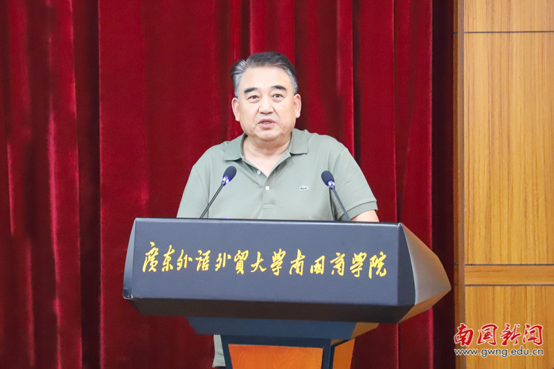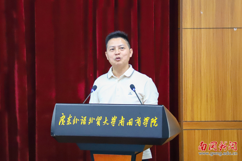 正保教育集团广东区总经理杨智浩在致辞中,对学校的信任与合作表达感谢。他指出,正保教育集团将在未来的合作中运用AI技术等科技助力教学,持续引进优质企业资源,为ACCA创新班未来的学习与发展做出全力的支持。