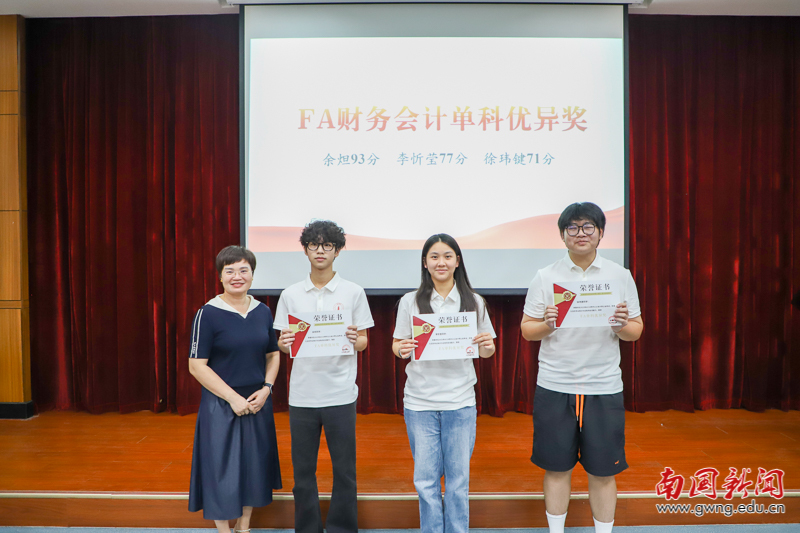 颁奖典礼中,管理学院执行院长文佑云教授为2024级ACCA创新班教学中做出突出贡献的优秀教师郭静老师颁奖,并为余炟等优秀同学颁发荣誉证书。据悉,在ACCA全球考试中,2024级ACCA创新班MA管理会计科目的通过率达52%,FA财务会计科目的通过率达57%,这充分体现了该班的办学成果。