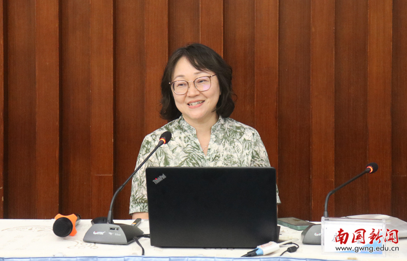 首先康博士回顾了广外全英(双语)课程的发展历程,强调优秀的全英(双语)教学体系是团队作战、系统支撑的成果。其次结合三门课程的制作演进,康博士分享了其教学法的三个阶段:“师承”打下坚实基础、“友助”融合国际视野、“自创”打造特色教学模式。她详细介绍了如何规范课程大纲、设计互动环节、动态调整中英文授课比例以适配学情,以及在她主讲的《商业伦理》课程中,如何运用“对分课堂”模式和组织“研讨会”来激发学生深度思考。康博士强调,教学不仅是知识的传授,更是与学生的真诚互动,教师应“眼里有学生”,尊重并看到每一位学生的成长。