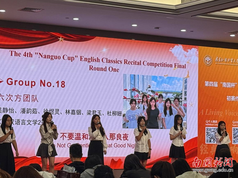 “南国杯”“英语经典”朗诵大赛(大学英语组)作为我校“三随”品牌特色活动之一,旨在践行我校“强外语,重实践”人才培养模式,彰显我校外语办学特色,构建大学英语学习共同体,自举办以来对于营造我校英语学习氛围、凸显我校外语特色起到了重要的推动作用。本次朗诵大赛的举办进一步激发了全校学生的英语学习热情,为我校培养复合型、应用型、创新型、国际化高素质人才积极助力。(文/翁依欣、陈卡雷、于恩泽,图/吴梓锽、李国源、孙加家)