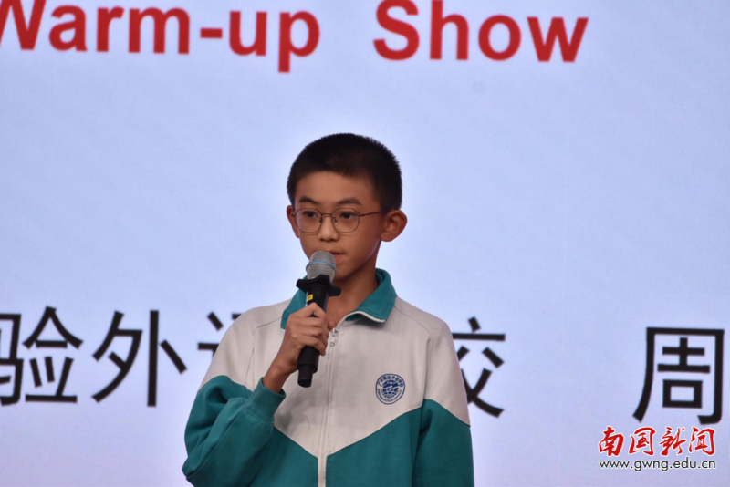 来自广州市实验外语学校的周戈同学作为特邀嘉宾,在赛前带来精彩的开场秀,用流利的英语和饱满的热情展示出了“三随”理念的强大活力。