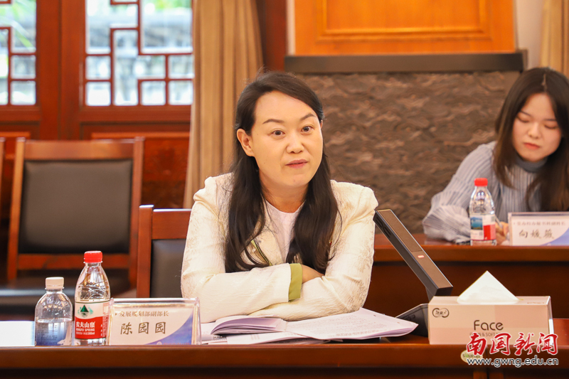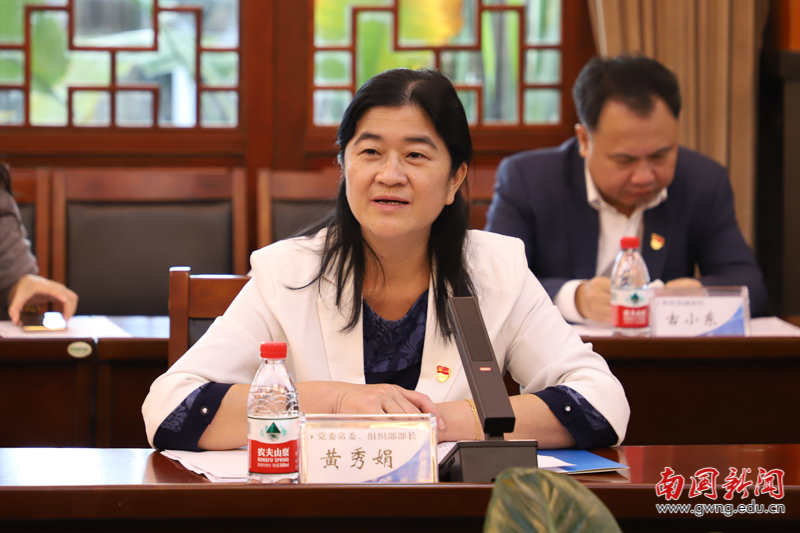 黄秀娟就第二轮党建与思政工作结对共建作了系统部署。她表示,广外党委高度重视此次共建工作,已由党委书记石佑启担任组长并牵头成立专项领导小组,并与南国商学院共同制定了三年总体规划和年度实施计划。根据上级文件精神,我们构建了“1+3+N”模式,即设立1个领导小组统筹全局,组建党建、思政工作、引领发展3个专项团队负责具体推进,首批确立3对学院结对示范点(广外英文学院——南国英语语言文化学院、广外经贸学院——南国经济学院、广外马克思主义学院——南国马克思主义学院),未来将根据实际需要逐步扩大结对范围。黄秀娟进一步明确,下一阶段共建工作将聚焦组织建设、思政育人、队伍能力与发展质量四大重点领域,强化沟通协调、注重实效产出、加强宣传引领,着力打造具有辨识度和影响力的结对共建品牌,推动两校实现资源共享、优势互补、合作共赢的高质量发展新格局。