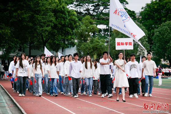 国际学院方阵汇聚多国学子,一场红蓝交织的花球舞,彰显国际文化交流的活力与开放,更是体现青春无国界,梦想共此时。
