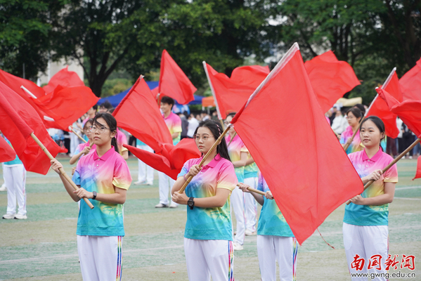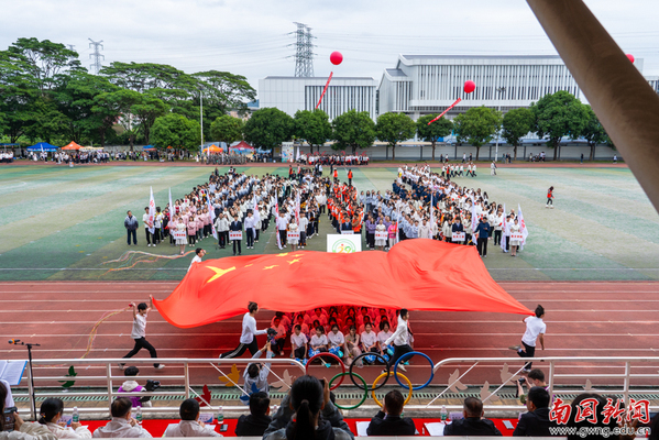 在庄严的升国旗、奏唱国歌仪式后,许志超致开幕词。许志超指出,本届运动会是对学校“五育并举”育人成果的检阅,是融入国家“体育强国”建设大局的实践,并与正在举行的粤港澳大湾区全运会盛事相呼应。他希望师生通过运动燃斗志,展现昂扬风貌,以团结协作的体育精神,为校园发展注入动力。最后,许志超预祝本届运动会取得圆满成功。