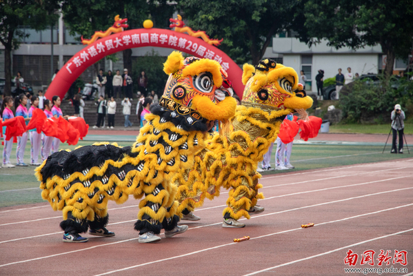 管理学院将刚柔并济的舞蹈和舞剑与生动的舞狮表演相融,尽显中华独特的文化魅力。