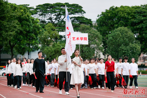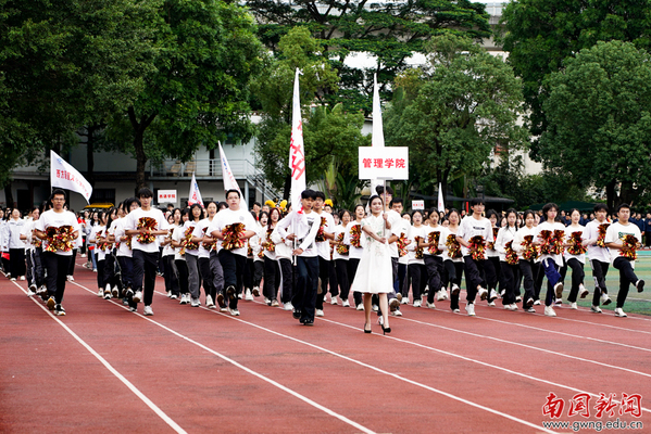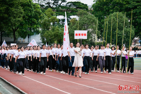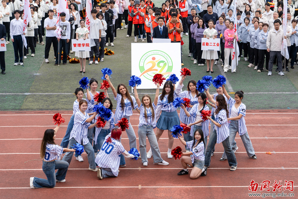 本网讯 11月13日上午,我校田径运动场上欢呼声与音乐声交织,第二十九届运动会开幕式正式启幕。党委书记许志超,副校长赵福春、陈林汉、王关义,学校第29届运动会组委会全体成员及全校师生共同出席开幕式。17支代表队方阵依次登场,多个方阵的表演让人眼前一亮:管理学院醒狮团开场造势,扇舞与舞剑行云流水、刚柔并济;文传学院伴《水调歌头》展团扇雅韵,转场啦啦操迸发活力;经济学院手势舞“种”出绿芽红花,复刻生命生长力量;教育学院踏竹竿“开合”节律跳民族舞蹈,传承文化根脉显民族自信;东语学院情景演绎百年历史节点,传递青年担当。