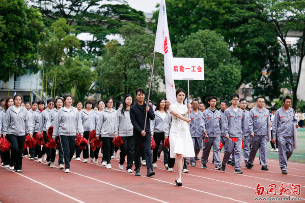 后勤一工队以人为本,真诚服务,保障后勤,以整齐的服装、有力的步伐体现其昂扬向上的精神面貌。