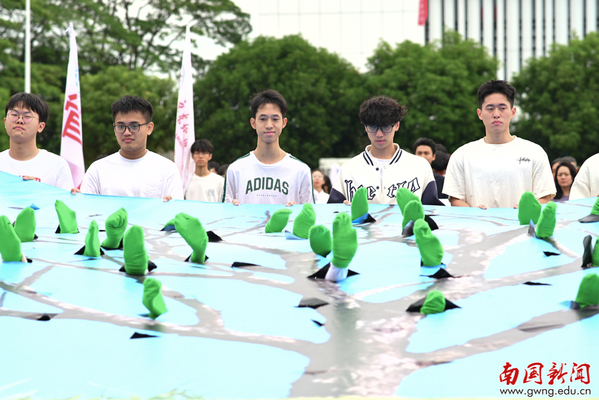 马克思主义学院和网信工会用红色的绸带共同构筑五角星,红色与黄色的交相辉映彰显青春信仰。