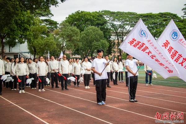 英语语言文化学院的“SELC”标识熠熠生辉,英文歌的律动和漫天泡泡,既彰显语言文化特色,又营造浪漫出场氛围。