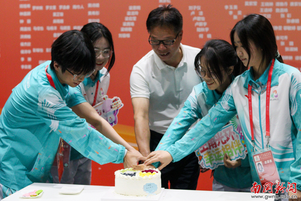 广州市人大常委会党组副书记、副主任、十五运会排球(U18.U20)竞委会主任唐航浩,团广州市委书记、市执委会志愿者部部长段希,白云区人大常委会党组成员、副主任、白云区总工会主席、十五运会排球(U18.U20)竞委会副主任杨雄忠等领导专程来到场馆看望志愿者。