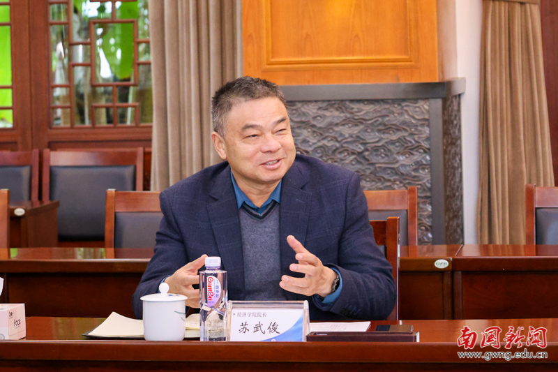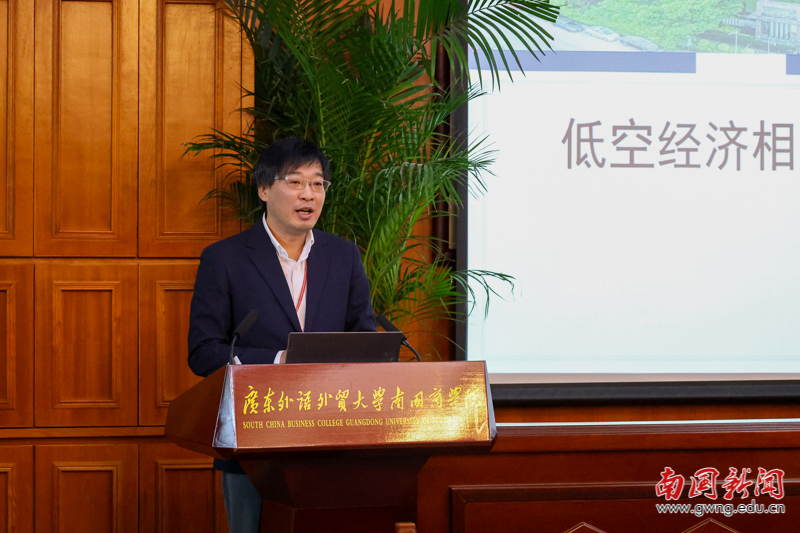随后,经济学院院长苏武俊介绍了学院整体发展情况及低空经济专业建设的总体方向。副院长李玥作经济学院低空经济专业建设的专题汇报,系统阐述了该专业的设置背景、课程体系架构、产教融合路径以及“懂技术、通经济、善管理”的复合型人才培养目标。他强调,专业建设紧密对接粤港澳大湾区低空经济发展需求,整合经济学、管理学与信息技术等多学科资源,重点服务低空飞行器运营、空域管理、低空物流与数据治理等新兴业态。