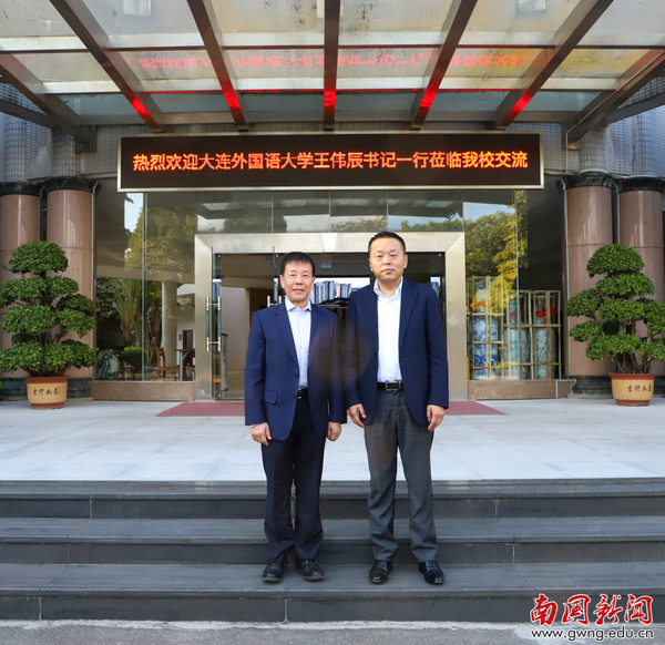 王伟辰书记对我校的热情接待表示衷心感谢,并高度评价了我校办学成果。他指出,南国与大外同属外语类院校,在办学理念、学科布局等方面高度契合,合作前景广阔。他表示,此次签约是两校深化务实合作的重要一步,大连外国语大学将认真落实协议内容,积极支持并妥善安排南国商学院选派学生的交流学习,在学业与生活上提供充分保障。他希望以此次交流为契机,推动两校合作走深走实,不断取得成效。