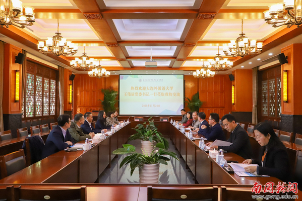 本网讯 11月20日下午,大连外国语大学党委书记王伟辰,党委常委、副校长刘风光一行6人来访我校,双方正式签署人才培养合作协议。至此,我校校际合作院校已增至7所,合作区域首次扩展至东北地区。我校校长王华、党委书记许志超、副校长曾用强及相关职能部门负责人等出席签约仪式,共同见证这一重要时刻。曾用强主持会议。