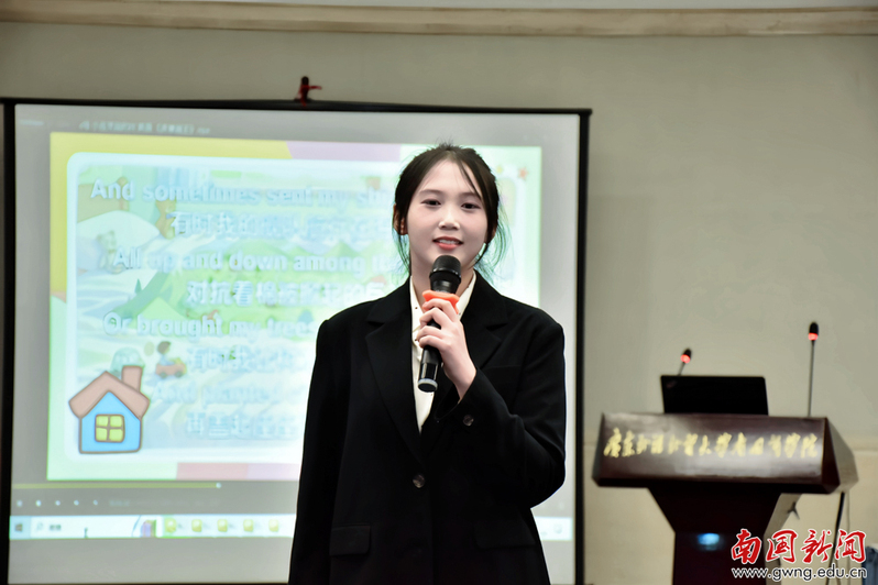 大赛伊始,由教育学院翁琳老师致辞。她指出,本次大赛是智绘鸽·多语言志愿服务队的实践延续,旨在为南国学子搭建更广阔的语言展示与文化交流平台。同时,赛事汇聚多学院力量、涵盖多语种作品,既能让同学们尽情展现语言风采,又能推动优秀作品走出校园、链接国际舞台,助力大家在多元表达中成长。此外,翁琳老师还向所有参与师生与评委的辛勤付出表示诚挚感谢,并寄语学子们在文化传播的道路上持续前行。