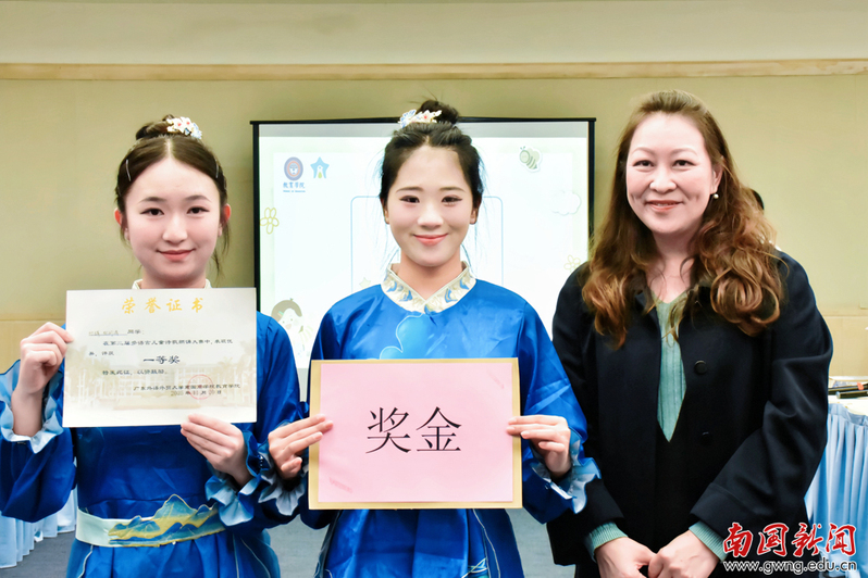 所有队伍完成展示后,东方语言文化学院许静华教授进行总结点评。首先她高度肯定各队伍的精心筹备,特别是在服装上的用心,不仅体现了对比赛的重视与仪式感,更彰显了南国学子认真严谨的态度。许静华教授表示,在多语言文化交融的背景下,本次活动既是展现作品多元魅力的平台,更是一场兼具仪式感与创造力的文化盛会。她特别提及,各队伍在多语种演绎、发音韵律的感染力,以及互动设计、多维度展示等创意形式上的巧思,都为朗诵艺术注入了新活力。最后,她鼓励同学们延续比赛中的认真与创新精神,期待这项活动能走向更大舞台,让多语言文化的魅力被更多人看见。