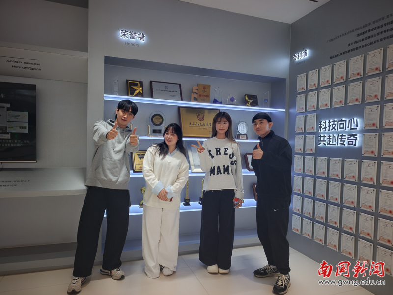参观首站,师生们走进了广汽传祺的智能化生产车间。只见机械臂灵活翻转,机器人精准完成焊接、组装等工序,全自动化流水线高效运转,展现了现代工业智能制造的先进水平。国际学院师生不时驻足观看,对机器人的精准操作与车间的智能化水平非常赞叹,纷纷为中国制造的技术进步“点赞”。