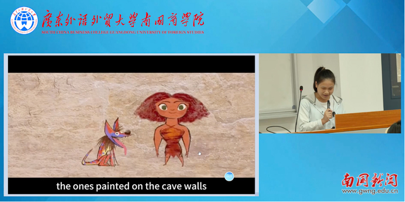 决赛环节,各参赛队伍面临着颇具挑战性的配音任务。学院精心准备了不同风格的影视片段,旨在全面考查学生的英语综合素养和表演能力。单人小队的配音材料选取自经典动画电影《疯狂原始人》,要求参赛学生对小伊的独白进行配音,且需让台词节奏与背景音乐完美契合,这对学生的语感和节奏把握能力提出了极高要求。双人小队则负责奥斯卡最佳影片《绿皮书》中两位主角的对话配音。其中一人发音考究、谈吐优雅,另一人略带口音、谈吐粗俗,学生需要精准地呈现出这种鲜明的对比,充分展现角色的个性特点。三人小队的配音素材来自热门动画《疯狂动物城》,是兔子与狐狸到车管所找树懒查询车牌号的精彩一幕。学生们需要默契配合,生动表现出兔子的急迫与无奈、狐狸的调皮捣蛋以及树懒独特的说话节奏,这对团队协作和角色塑造能力是一个极大的考验。