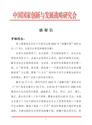 罗颖的理论研究成果获得了主办方的高度认可。国创会在感谢信中特别指出,罗颖的研究为“拓展中俄互利合作新空间提供了重要理论支持”。作为由国家批准成立的高端智库平台,国创会主办的“读懂中国”国际会议已成为宣介中国发展理念、推动国际对话的重要窗口。本届会议聚焦中国式现代化与全球治理新格局,覆盖全球50多个国家,媒体传播量超过21亿次,罗颖的研究成果通过这一高端平台获得了广泛的国际关注。