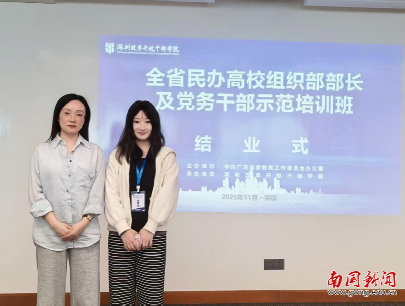 11月16日至21日,全省民办高校组织部长及党务干部示范培训班在深圳改革开放干部学院举办。学校党委组织部部长郭婷、党委组织部党务科梁琪翊参加。培训聚焦新时代党的建设总要求,通过系统学习党的创新理论、党建工作实务,辅以实地调研、参观走访以及与先进经验交流等方式,推动党建工作与学校高质量发展、教育教学深度融合,切实增强民办高校党组织的政治功能和组织功能。培训期间,专家学者针对学习贯彻习近平总书记关于党的建设的重要思想、党的二十届四中全会精神、教育强国建设等进行了专题宣讲,系统阐释了党的最新理论成果对民办高校党建工作的新部署、新要求。在经验交流环节,我校分享基层党组织标准化规范化建设及党建激励政策等方面经验,为参训人员提供借鉴。