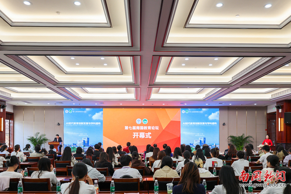 本网讯 12月11日,第七届南国教育论坛在学校国际学术报告厅举办。本届论坛以“智能时代教育创新发展与学科构建”为主题,采用“线上云端联动+线下主会场研讨”的混合模式,直面教育数字化转型中的深层挑战,探索教育专用大模型与师生数字素养培育的实践路径,为建校30周年献上了一份厚实的学术贺礼。论坛汇聚了校内外教育领域的权威专家、一线教育工作者。我校校长王华教授,副校长王铭玉教授、王关义教授,教育学院领导及师生代表也共同参与,形成了多层次、高水平的学术交流格局。