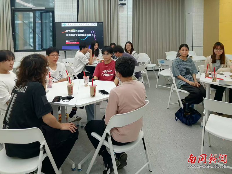 座谈会上,学生代表踊跃发言,结合自身学习经历,分享了在专业课程学习、语言能力提升、考证考研规划、实习就业衔接等方面遇到的挑战与思考。同学们的困惑具体而实际,有的反映通识选修课选课时间冲突,希望优化流程;有的对考研方向选择、各类职业资格证书(如BEC、CATTI等)的备考路径与时间规划存在疑问,寻求系统性指导;有的希望了解如何获取高质量专业实习机会,以及商务英语专业在就业市场中的定位与竞争力;还有的关注如何将课堂所学(如项目报告、策划案等)转化为更具展示度和应用价值的可视化成果,以助力升学或求职。这些细致务实的问题,展现了商英学子勤于思考、主动规划的优秀风貌。与会教师耐心倾听,并给予细致解答和建设性指导,坦诚而专业的回应赢得了同学们的广泛认可。