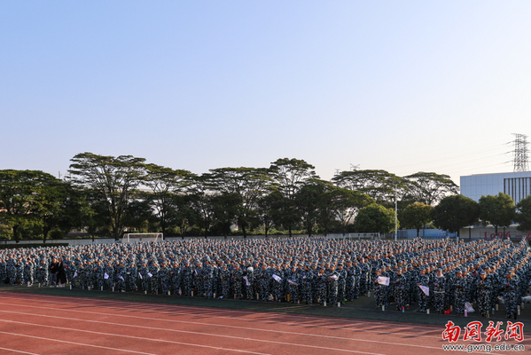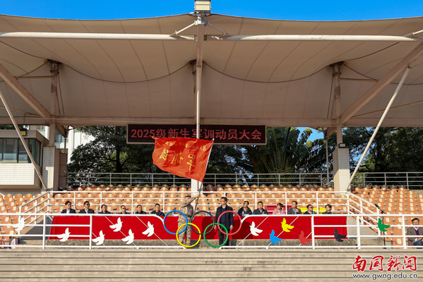 大会在庄严的升国旗、奏唱国歌仪式中开始。许志超作军训动员讲话,许志超书记在讲话中向关心支持学校国防教育和军训工作的白云区人民武装部、承担本次军训任务的全体教官表示感谢,向全体参训新生致以问候。他指出,为期14天的军训是大学生涯重要的实践课和青春路上的精神洗礼,是青年学子接受国防教育、强化国家安全意识的重要形式,也是学校落实立德树人根本任务的重要举措。他对参训同学提出三点希望:一是心怀家国,以赤诚赴训,在训练中体悟国防内涵与忧患意识,展现昂扬向上的精神风貌;二是锤炼意志,以坚毅践训,做到严于律己、令行禁止,吃苦耐劳、挑战自我,团结协作、荣辱与共;三是严守纪律,以规范保训,深植安全意识,严守训练规程,培养严谨细致的生活作风。他鼓励同学们以学校携笔从戎的优秀学子为榜样,在训练中挥洒汗水、锤炼品格、收获成长,以戎装为甲、以青春为刃,书写迷彩荣光。