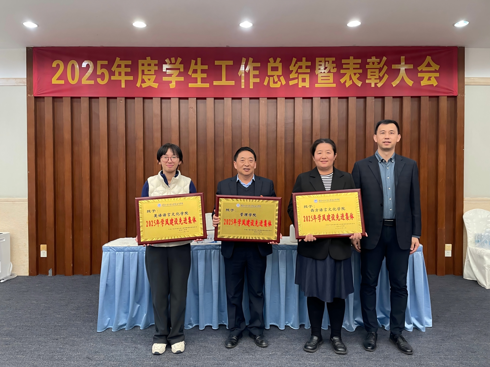 英语语言文化学院、西方语言文化学院、文化与传播学院获“学生工作先进集体”荣誉称号;英语语言文化学院、西方语言文化学院、管理学院获“学风建设先进集体”荣誉称号。西方语言文化学院高彩云、文化与传播学院黄泳茵、计算机学院范悦、校团委黄彦虹四位老师获“学生工作科研先进个人”荣誉称号。