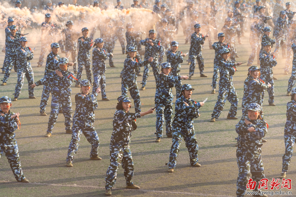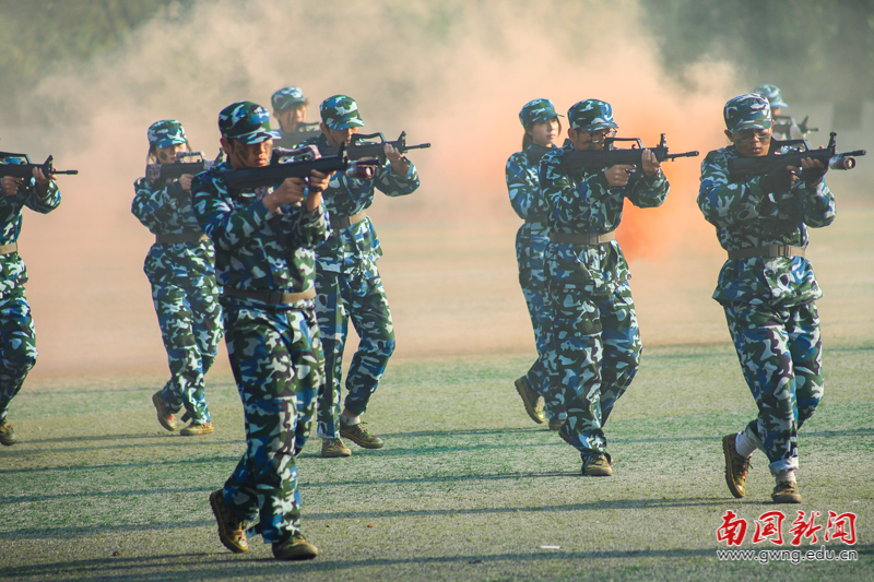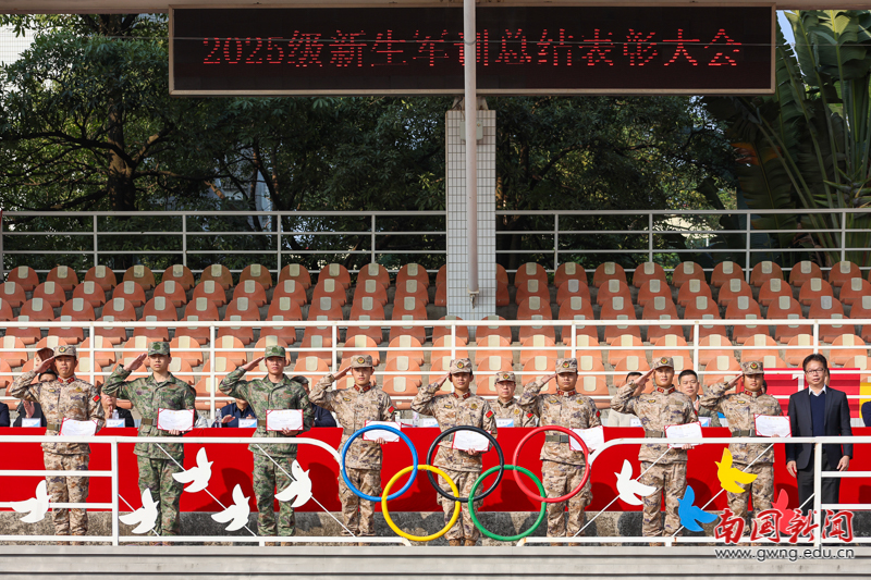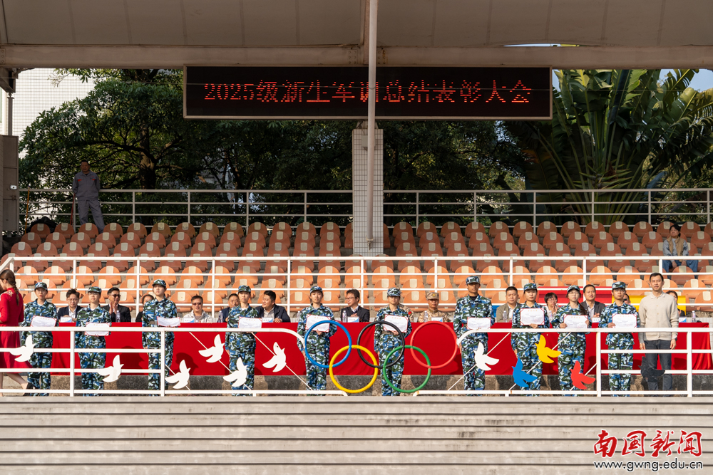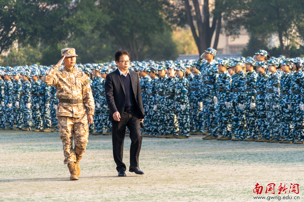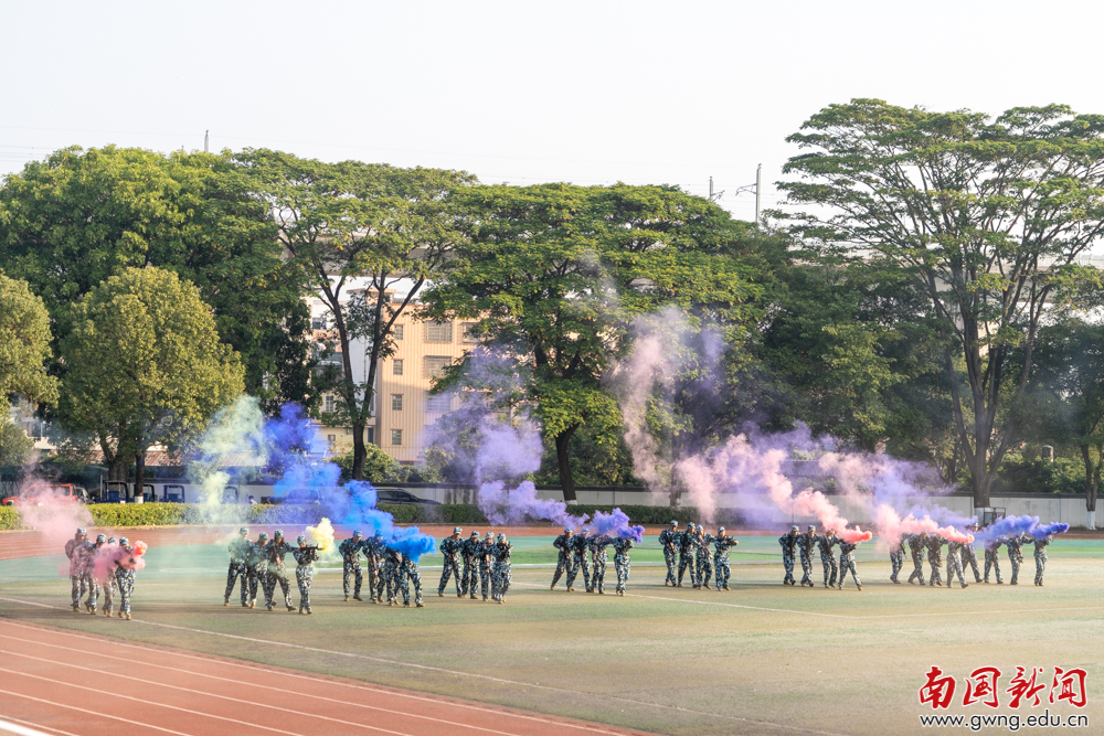 本网讯 暖阳铺笺,迷彩引路!119日上午,广东外语外贸大学南国商学院在田径运动场举行2025级新生军训阅兵会操暨表彰大会。三千余名新生在模拟战场环境中展示了为期14天的军事训练成果。分列式上12支方阵步伐铿锵,匕首操、拳术、棍术虎虎生风,战术小分队在烟雾实景中展开解救人质演练,女子旗语方阵更是以红旗拼出“SCBC 2026 30周年”字样,用独特方式为学校三十周年校庆提前献上深情祝福。学校党委书记许志超检阅军训队伍。党委副书记副校长赵福春,承训单位领导军训教官学校相关职能部门负责人、各学院党总支书记及新生辅导员等出席大会