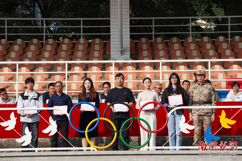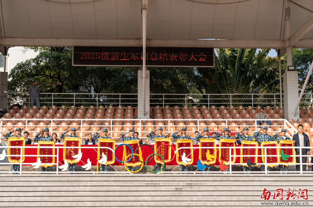 大会对军训中表现突出的集体与个人进行了表彰。赵福春宣读了表彰决定,授予二连等12个连队军训工作先进集体荣誉称号;陈树杰等8人获优秀教官荣誉称号;刘江奎等6人获优秀辅导员及先进工作者荣誉称号;崔咏霖等186名同学获优秀学员荣誉称号。获奖代表依次上台领奖,许志超、白云区人武部驻点专武干部蔡伟云学工部副部长王黎明武装部副部长赵明明等领导为先进集体和个人颁奖,现场气氛热烈。