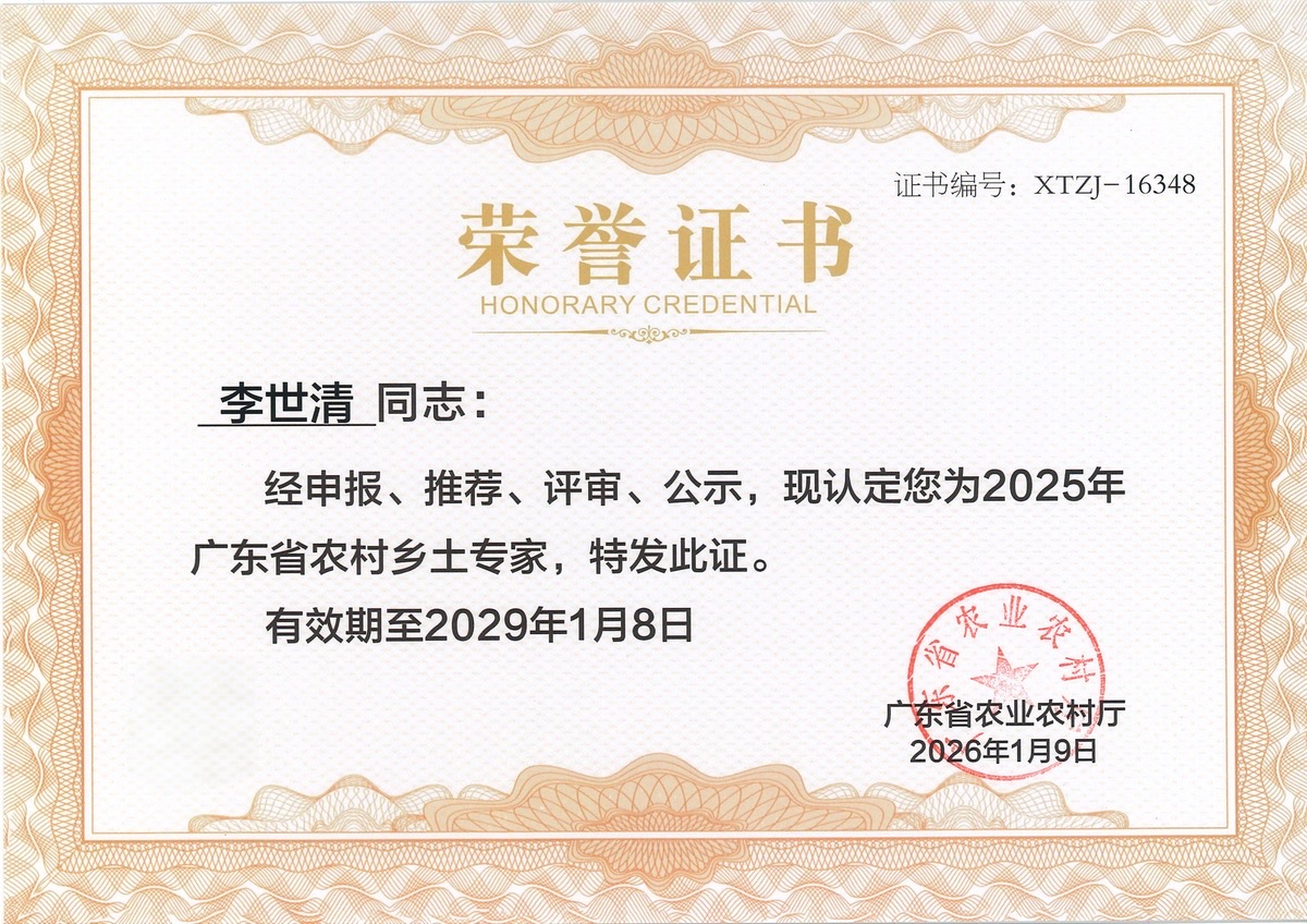 本网讯 近日,由广东省农业农村厅认证公布的2025 年广东省农村乡土专家名单出炉,我校管理学院学生李世清成功入选,且是此次全省唯一的大学生党员代表,他以“党建引领+直播助农赋能”模式扎根乡土、服务“三农”,近三年助销837万公斤农产品,累计创造直接经济效益约620万元,带动1380户果农实现增收。