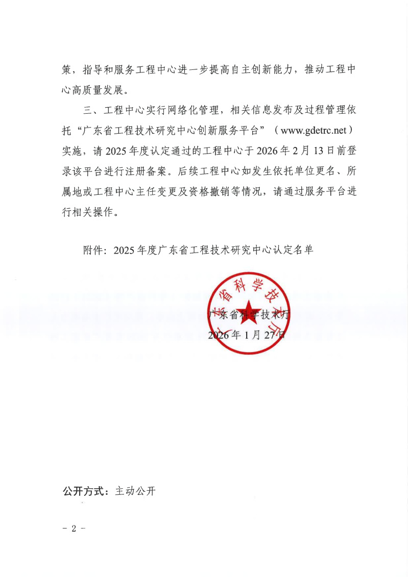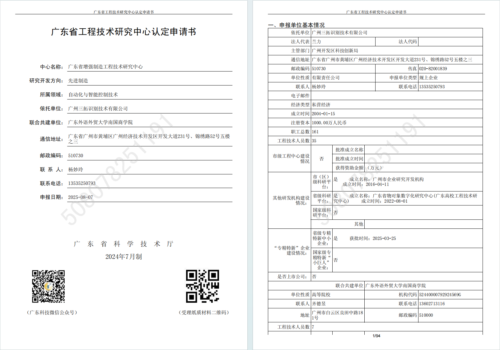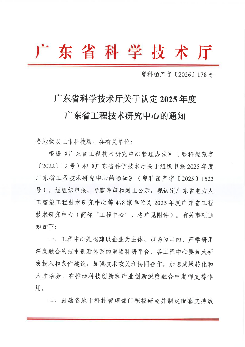 本网讯 2026年1月,由我校数字化科学技术研究院与广州三拓识别技术有限公司联合申报的“广东省增强制造工程技术研究中心”(GuangDong Engineering Technology Research Center of Ubiquitous Manufacturing Augment),经广东省科学技术厅严格评审,正式被认定为“广东省工程技术研究中心”。