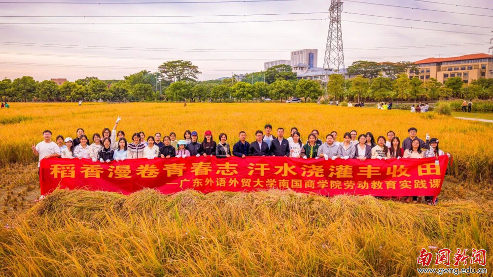 校党委书记许志超带领师生下田收割(苏烨 摄)