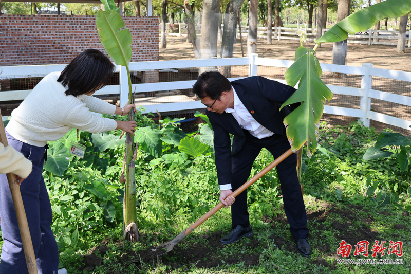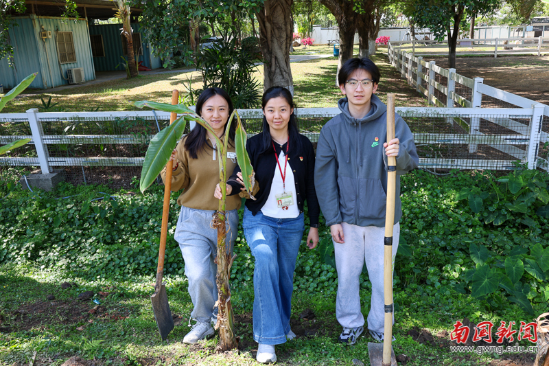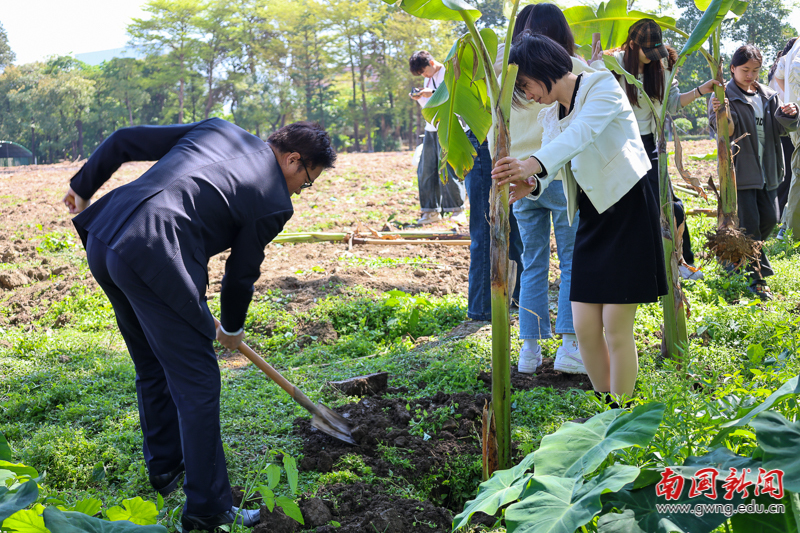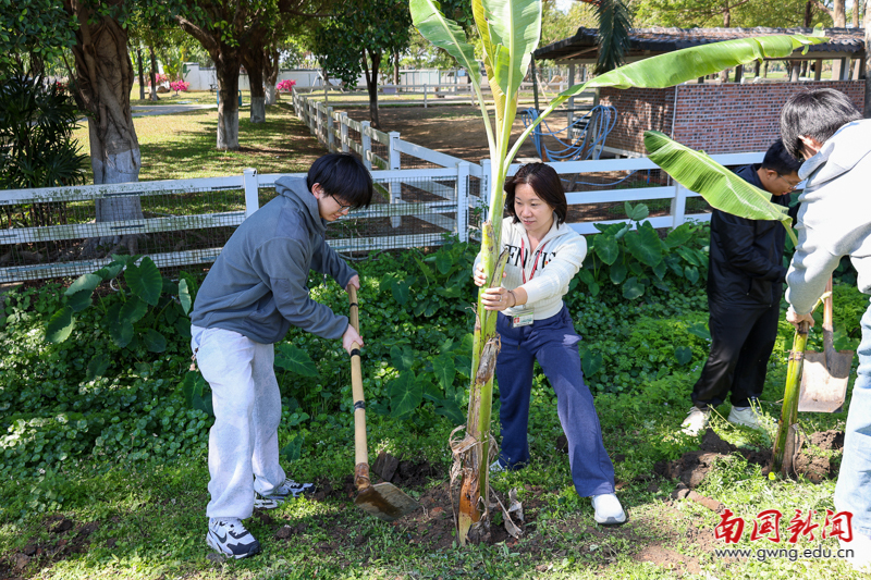 挥锹培土播新绿 我校师生共植芭蕉树献礼植树节