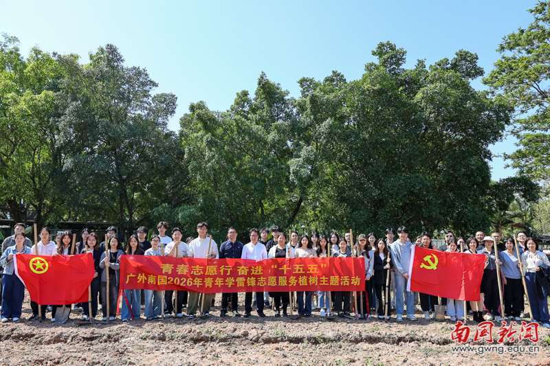 本网讯 春回大地万物苏,植树添绿正当时。为深入践行“绿水青山就是金山银山”理念,积极响应国家“双碳”目标,弘扬雷锋志愿服务精神,3月12日植树节到来之际,我校在绿化基地开展了以“青春志愿行 奋进‘十五五’”为主题的2026年青年学雷锋志愿服务植树活动。此次活动将劳动教育、生态思政与志愿服务深度融合,校领导、校团委负责人、各学院师生代表及机关第五党支部全体党员齐聚一堂,共播绿色希望。