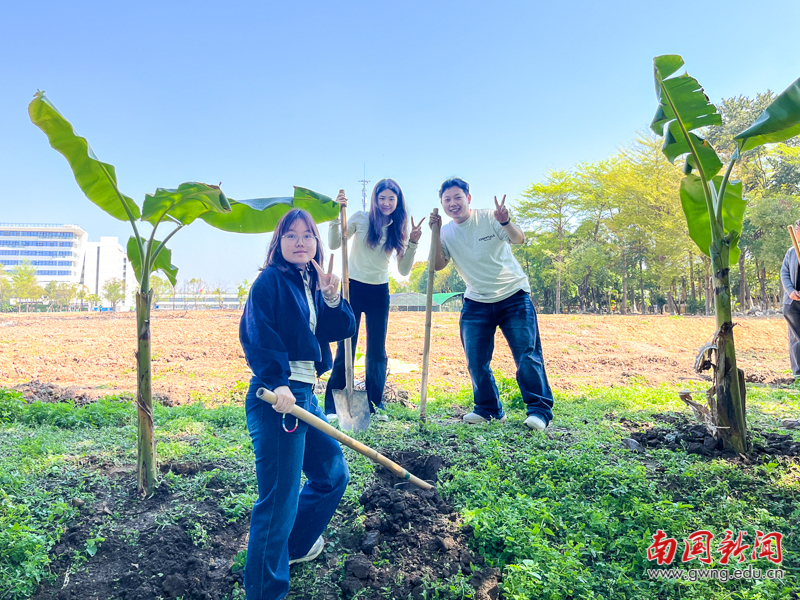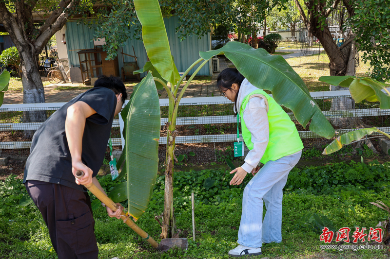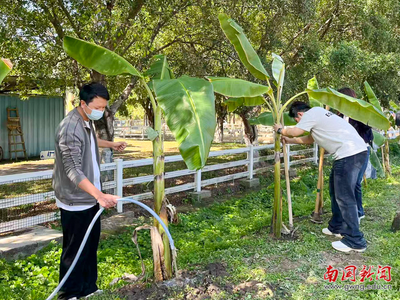师生共同栽种芭蕉树