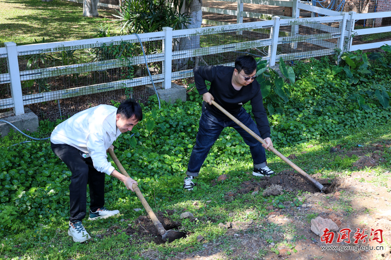 经过一个多小时的并肩奋战,校内绿化基地与羊圈旁区域焕然一新。一株株芭蕉树苗错落有致、迎风挺立,在春日暖阳下焕发出勃勃生机,成为校园里一道亮丽的风景线。