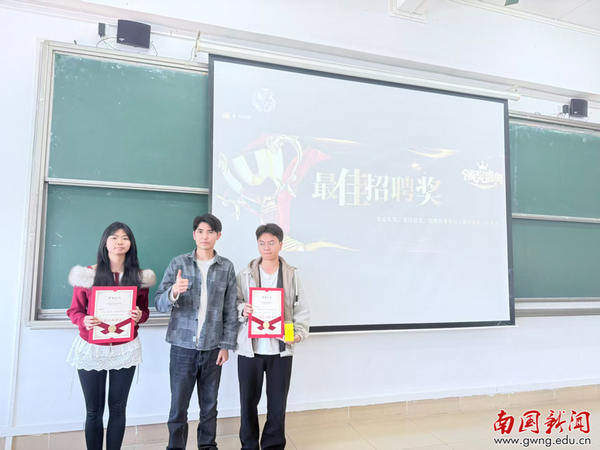 活动开始,毛俪霏老师在致辞中回顾了2025年底启动的寒假劳务招聘实践任务,肯定了学生在招聘流程落地、岗位需求分析与执行协同上的探索成果,强调本次展览是课堂知识向实践能力转化的重要平台。随后举行的实践颁奖典礼揭晓三大奖项:陈科基、颜妙婷获“最佳招聘奖”,张婉婷、张幸怡、张艺琼获“最佳人气奖”,潘英豪、石云飞、赖诗曼、沈彩于获“最佳参与奖”,以此表彰在到岗率提升、沟通运营和团队协作中的突出表现。