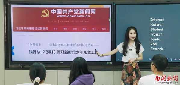 授课过程中,她注重引导学生将专业知识与育人使命相结合,通过情境模拟、小组讨论等互动形式,让学生在提升英语教学能力和跨文化交际能力的同时,树立正确的教育观和价值观。她结合中外教育案例对比,强调新时代英语教师的责任与担当,潜移默化地培养学生的爱国情怀和职业素养,实现了“知识传授”与“价值塑造”的同频共振。