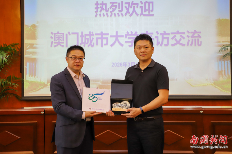 本网讯 3月19日下午,澳门城市大学代表团一行莅临广东外语外贸大学南国商学院,开展校际合作交流访问。此次访问旨在深化两校在人才培养、师资发展与学术协作等方面的务实合作,重点围绕硕士研究生申请、暑期访学项目、教师博士进修与短期访学等核心议题展开洽谈。