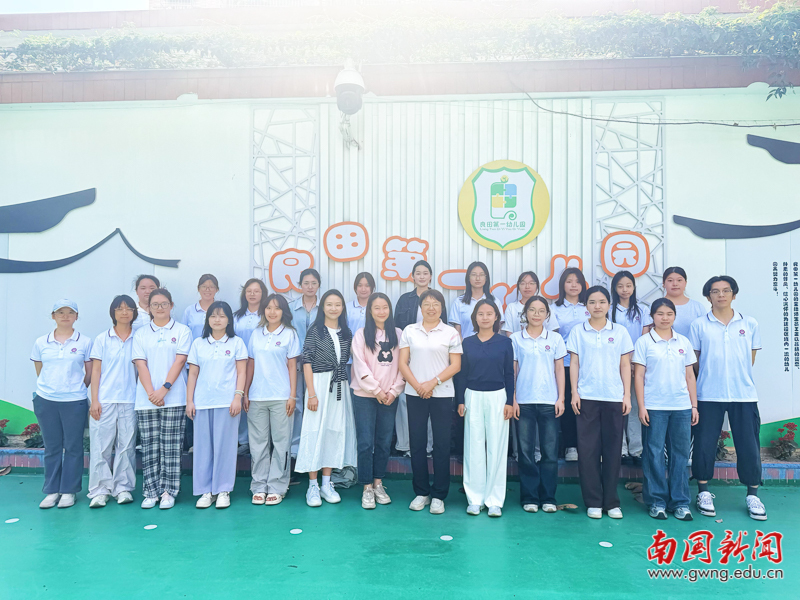 本网讯 3月16日下午,教育学院学前教育系“综智双语”义教活动在广州市白云区良田第一幼儿园顺利开展。本次活动由学前教育系主任许冰洁老师、副主任陈智秀老师、郑圆皓老师带队,2023级学前教育(师范)专业全体学生参与,标志着新学期校企协同育人实践项目正式启动。