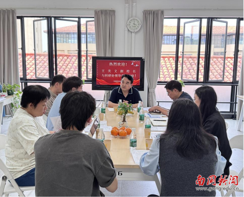 本网讯 3月21日下午,学校副校长王关义带队,率科研处副处长许军及科研处相关成员莅临英文学院开展科研工作专题调研,围绕“十四五”规划科研复盘与“十五五”规划方向,与学院领导班子和科研骨干深入座谈,为外语龙头学科的下一步发展把脉定向。英文学院党总支书记王黎明,副院长陈玉莲、王家宝,以及学术委员会主任宁一中教授等参加调研座谈。