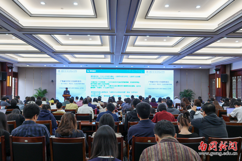 本网讯 3月22日,广东外语外贸大学南国商学院“产教深度融合・AI赋能新生态”产教融合与AI课程建设联合培训班顺利开班。开班仪式后,学校特邀中国高等教育培训中心特专委委员孔令桂教授、南京信息工程大学裴世鑫教授开展两场专题学术讲座,分别围绕产教融合背景下课程建设路径与AI赋能课程建设的探索与实践展开深度分享,为全校骨干教师与教学管理者带来前沿理论指引与可落地实践方案,助力学校推进教育数字化转型与课程体系高质量建设。