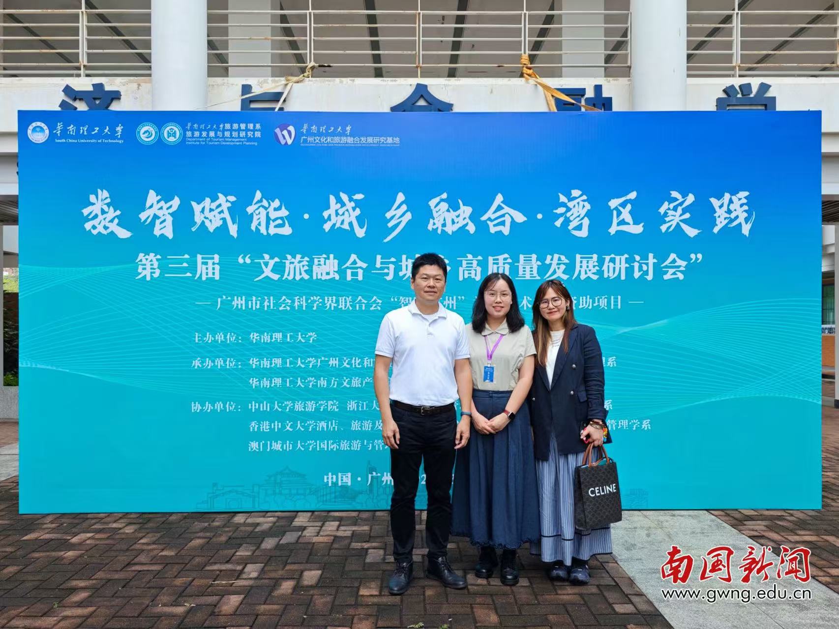 本网讯 2026年3月28日,由广州市社会科学界联合会主办的第三届“文旅融合与城乡高质量发展研讨会”在华南理工大学举办。会议汇聚了多位国家高层次领军人才和国家社科重大项目首席专家,以及来自全国高校与科研院所的学者200余人,共同探讨数字赋能、城乡高质量发展、大湾区文旅融合等方面的前沿理论与实践创新。我校管理学院副院长陈书星、教师麦惠雯、谢婕受邀参会,由旅游管理专业教师团队完成的学术论文获评大会优秀论文,麦惠雯老师代表团队在分论坛作专题学术报告。